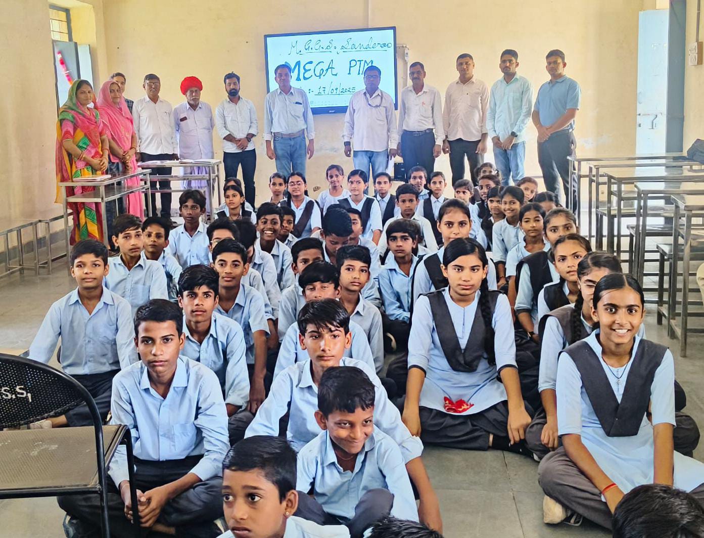 साण्डेराव(पाली) उपखंड क्षेत्र के साण्डेराव कस्बे के महात्मा गांधी राजकीय विद्यालय सहित आस-पास ग्रामीण क्षेत्रों में राजकीय विद्यालय मे शिक्षा विभाग की और से आयोजित सरकारी विद्यालयों में मेगा पेरेंट्स-टीचर्स मीटिंग (पीटीएम) आयोजन हुआ। आरपी हरिराम कलावंत ने बताया कि अभिभावक स्कूल पहुंचकर शिक्षकों से अपने बच्चों की पढ़ाई और प्रगति पर चर्चा की। विभाग का मानना है कि यह पहल न केवल बच्चों के शैक्षिक स्तर में सुधार लाएगी बल्कि अभिभावक और शिक्षक के बीच विश्वास को और मजबूत करेगी। पिछले कुछ वर्षों में सरकारी स्कूलों की छवि में बदलने के लिए सरकार ने कई कदम उठाए हैं। स्मार्ट क्लासरूम, डिजिटल शिक्षा के बाद अब नियमित मेगा पीटीएम इन्हीं प्रयासों की कड़ी हैं। प्रधानाचार्य कपूरचंद्र परिहार ने बताया कि जब अभिभावक स्कूल की गतिविधियों में सक्रिय रूप से जुड़ेंगे तो बच्चों का सीखने का स्तर अपने आप बेहतर होगा। पीटीएम में प्रखर पठन अभियान की योजना, लक्ष्य और प्रगति से अभिभावकों को अवगत कराया। विभाग का मानना है कि जब बच्चा देखता है कि माता-पिता और शिक्षक साथ बैठकर उसकी पढ़ाई पर चर्चा कर रहे हैं तो उसमें आत्मविश्वास और जिम्मेदारी की भावना दोनों बढ़ती है। साथ ही जब अभिभावकों जानेंगे कि बच्चे को किन विषयों में कठिनाई है तो वे घर पर भी अतिरिक्त सहयोग कर पाएंगे और लगातार अभिभावकों से मिलकर रिपोर्ट देने से शिक्षकों को भी अपनी पढ़ाई की गुणवत्ता सुधारनी होगी। इस दौरान महेंद्र गहलोत, लालाराम, कैलाश बावल, उम्मेदकंवर, धीरेंद्र राठौर, कपूराराम, पूनम कुमारी, प्रकाश चंद, मनोहरलाल, ताराचंद सहित छात्र-छात्राए उपस्थित थे।