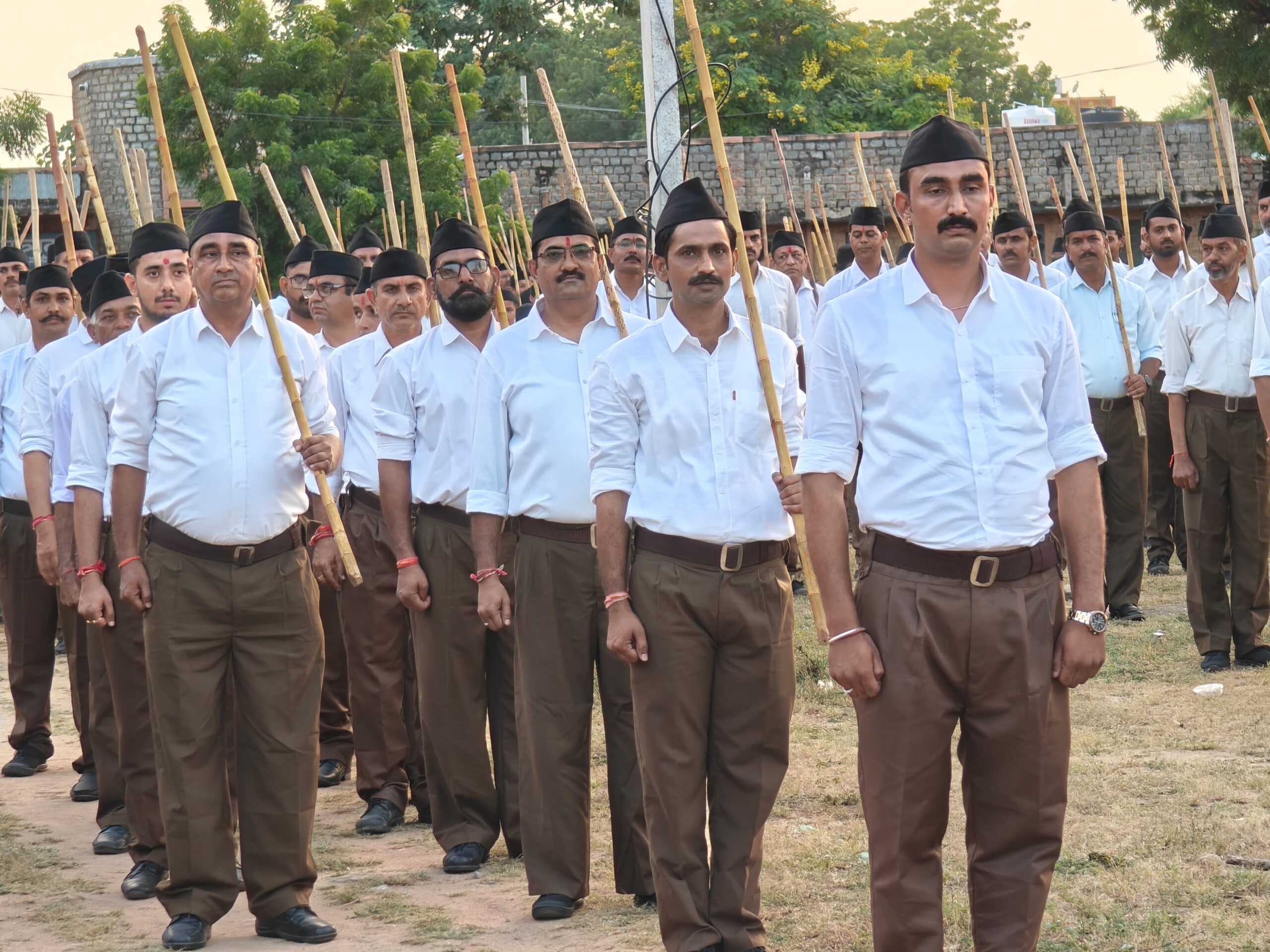 सुमेरपुर(पाली) राष्ट्रीय स्वयं सेवक संघ के नगर कार्यवाह राजवीर सिंह राजपुरोहित ने बताया कि संघ के 100 वर्ष पूर्ण होने पर संघ शताब्दि महोत्सव 2 अक्टूम्बर से 12 अक्टूम्बर तक पूरे देश मे अलग-अलग संचलन बस्ती अनुसार निकाले जाएंगे। जिसके के तहत आज सुमेरपुर शहर की नीलकंठ बस्ती द्वारा नगर में संचलन निकाला गया जिसमें नगर के स्वयं सेवकों ने भाग लिया। संचलन शाम 5 बजे से नगर के नम्बर 4 स्कूल से संचलन प्रस्थान होकर विद्युत विभाग कार्यालय के सामने की गली से गायत्री कॉलोनी होते हुए साई वाटिका, भैरव कॉलोनी, आदर्श कॉलोनी से बलदेव सिंह कॉलोनी होते हुए सप्तऋषि हॉस्पिटल से जवाई बांध रोड आर्य समाज सर्कल से नगरपालिका सर्कल, गणेश टॉकीज रोड से नम्बर 4 स्कूल गेट न.2 से संघ स्थान सुमेरपुर में समापन हुआ। विभिन्न मार्गों से संचलन निकला तब आम जनता ने भव्य पुष्प वर्षा की पूरा संचलन 4 किलोमीटर मार्ग पर चला। कार्यवाह राजवीर सिंह ने कहा कि संचलन शुरू करने से पहले शाम 4 बजे संघ स्थान पर ही विजय दशमी कार्यक्रम मनाया गया। जिसमें मुख्य वक्ता ओमप्रकाश शर्मा सादड़ी रहे। मुख्य वक्ता ओमप्रकाश शर्मा सादड़ी ने स्वंय सेवको को उद्बोधन में कहा कि संघ की स्थापना परम पूज्य सरसंघचालक डॉ हेडगेवार ने विजय दशमी के दिन 1925 में नागपुर में संघ की स्थापना शाखा लगा कर की। जिसका मूल उद्देश्य हिन्दू समाज को एक करना था तथा समाज मे फैली कुरितो को रोकना था।