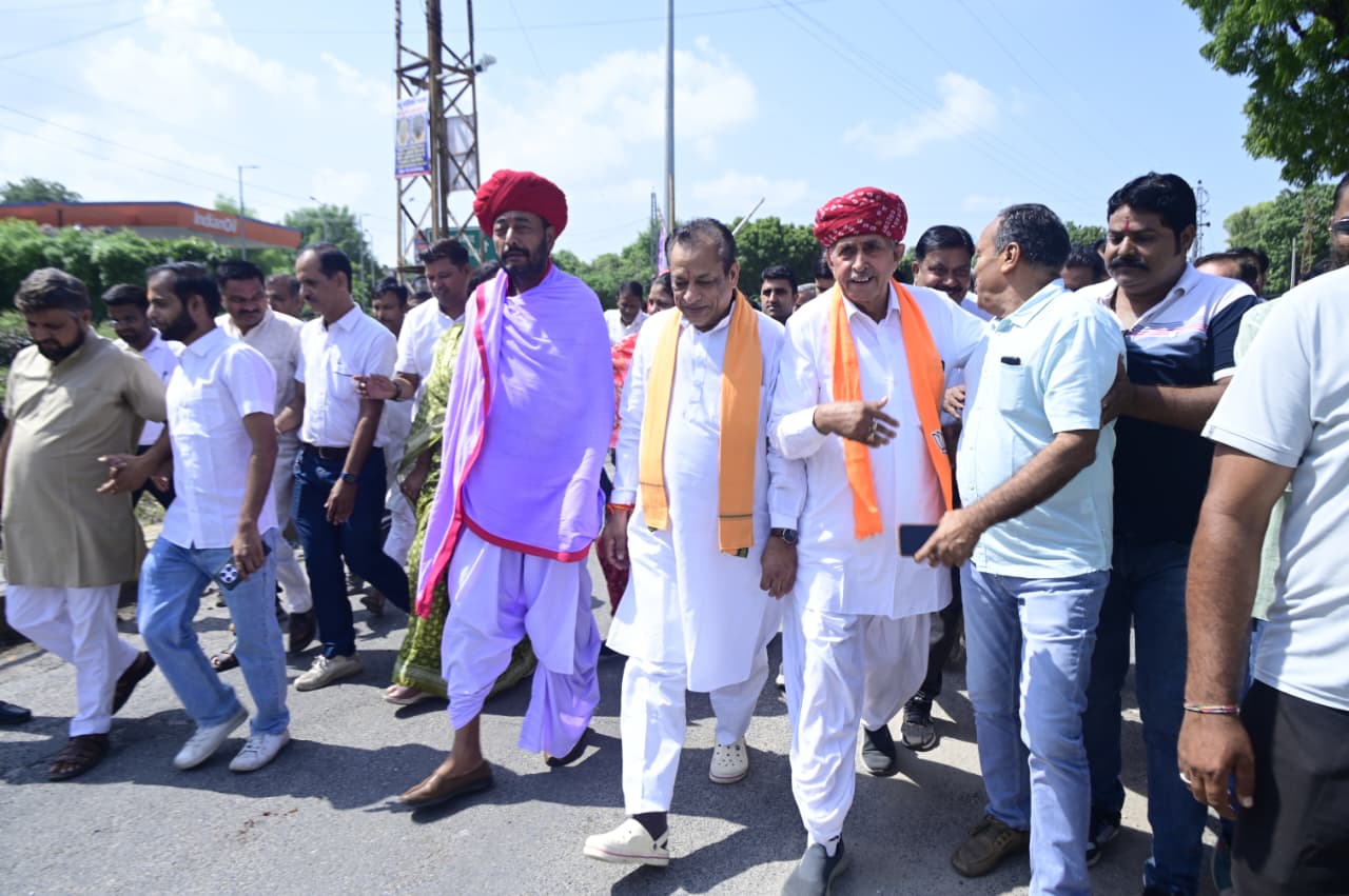जवाई के बहाव से टूटी पुलिया पर नेताओं का जमावड़ा